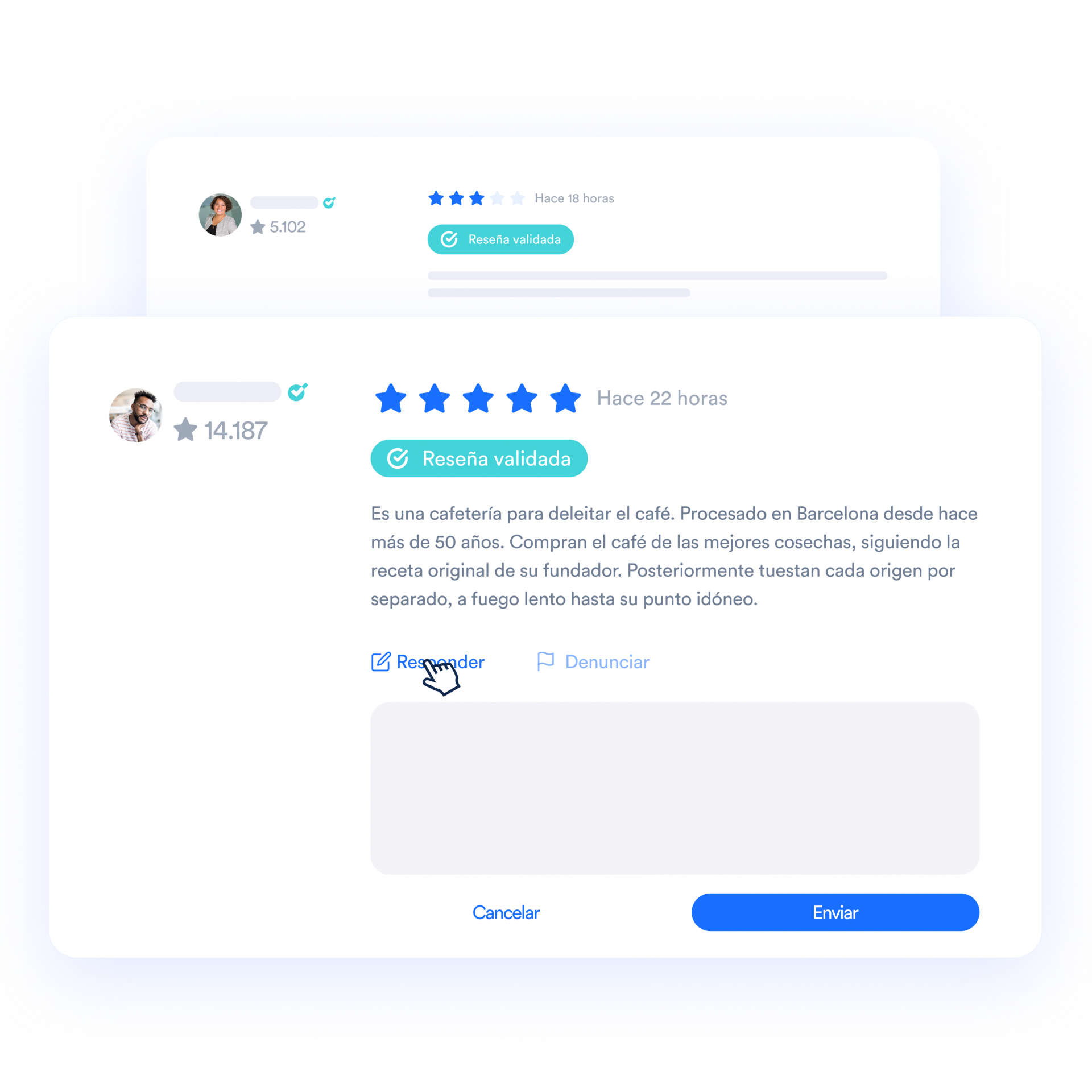 Un sistema integral de recopilación, validación y gestión de reseñas único en el mercado. Desde 2022, atrae y fideliza usuarios, protege la reputación de los negocios, les permite cumplir con la legislación y aumenta sus ventas mediante herramientas exclusivas.